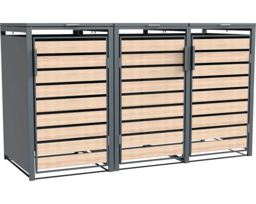 Mülltonnenbox WESTMANN Lacina 3 Metall inkl. Gasdruckfedern 200 x 80 x 116 cm anthrazit-Holzoptik