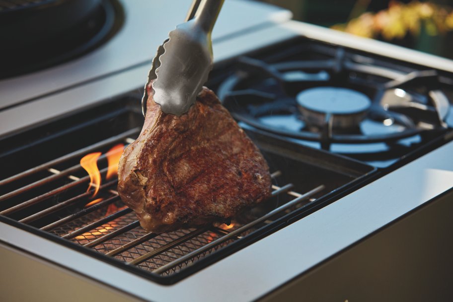 Dank stabiler Konstruktion und zusätzlicher Ablageflächen lässt sich der Grill komfortabel in Outdoor-Küchen integrieren.