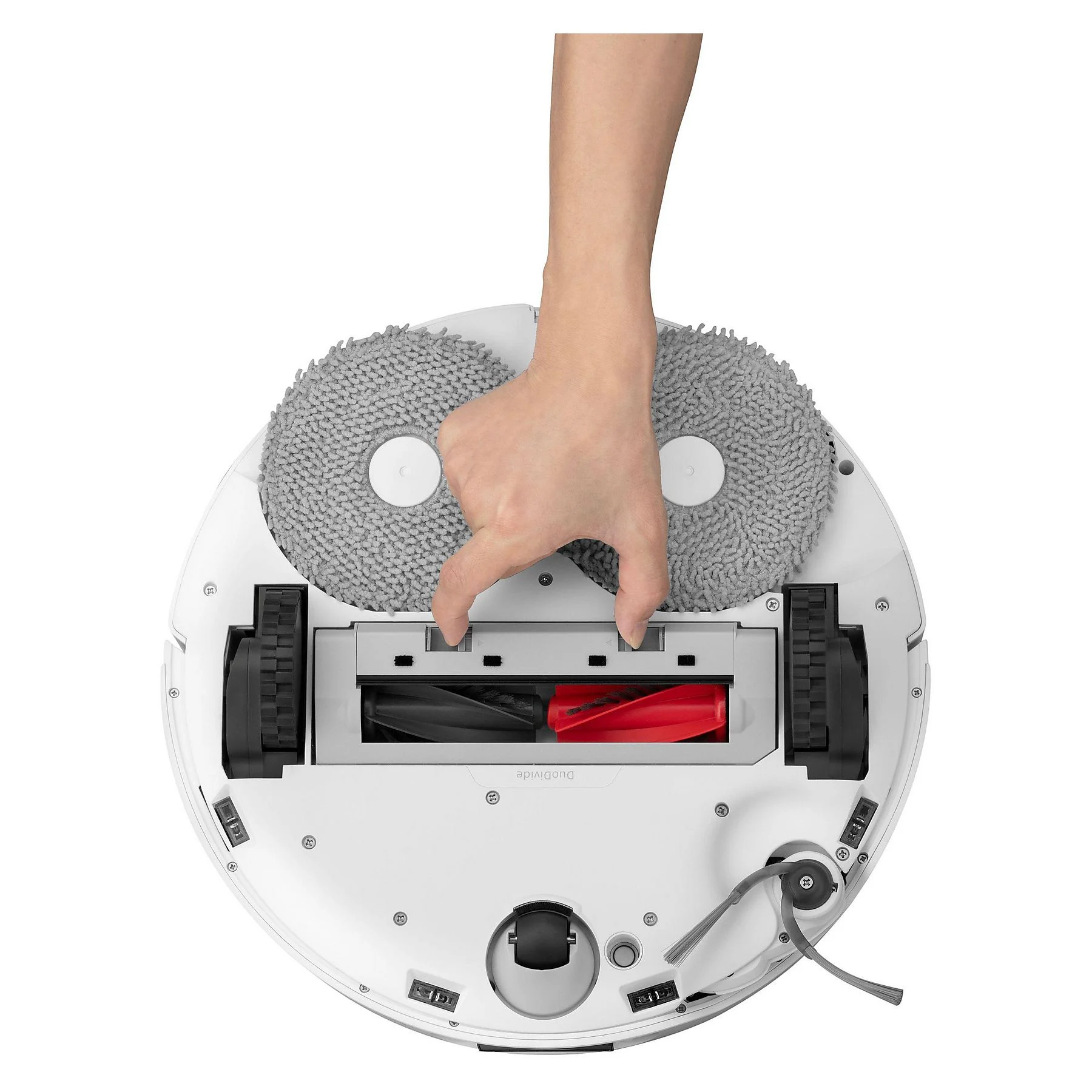 Entdecke das revolutionäre doppelte Verhedderungsschutz-System des Roborock Qrevo Curv mit Hauptbürste und Seitenbürste, einfach perfekt für den Umgang mit langen Haaren und für haustierfreundliche Wohnungen.
