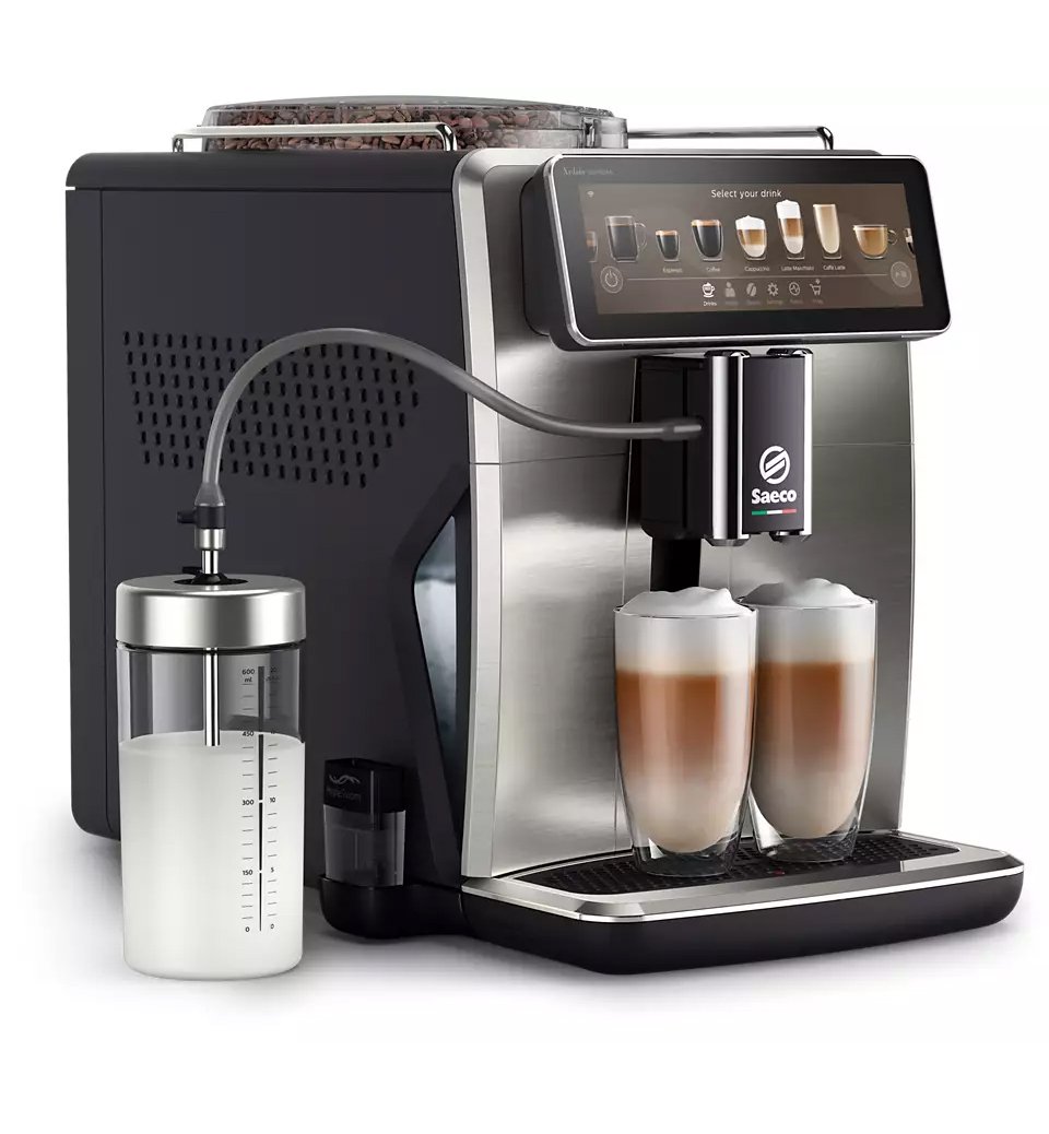 Der Saeco SM 8785-00 Xelsis Deluxe setzt auf eine benutzerfreundliche Bedienoberfläche mit großem Farb-Touchdisplay. Die klare Menüstruktur ermöglicht eine schnelle Navigation durch Getränkeauswahl, Einstellungen und Personalisierungsoptionen.