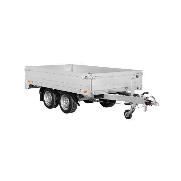 Dank der niedrigen Ladehöhe und der leicht bedienbaren Auffahrrampen wird das Be- und Entladen besonders einfach. Die große Ladefläche von 276 x 170 cm bietet ausreichend Platz für unterschiedlichste Ladungen. Die Bordwände können bei Bedarf abgenommen werden, wodurch der Anhänger flexibel an verschiedene Transportaufgaben angepasst werden kann.