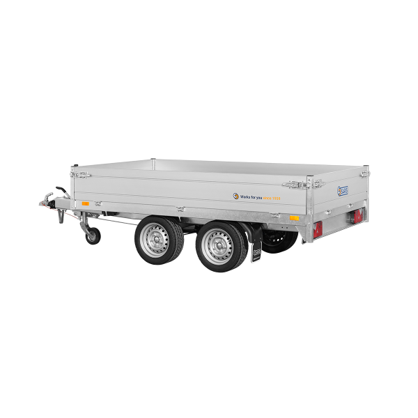 Dank der großzügigen Ladefläche von 276 × 170 cm lassen sich verschiedenste Güter problemlos transportieren. Ob Baugeräte, Gartengeräte oder Baumaterialien – dieser Hochlader Anhänger bietet ausreichend Platz und Stabilität. Die Seitenwände können bei Bedarf abgenommen werden, was den Ladevorgang erleichtert und den Anhänger noch flexibler einsetzbar macht.