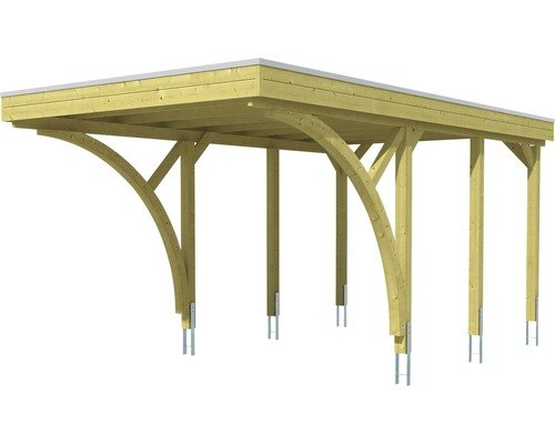 SKAN HOLZ Einzelcarport Friesland mit 2 Einfahrtsbögen und Pfostenankern 314×555 cm imprägniert