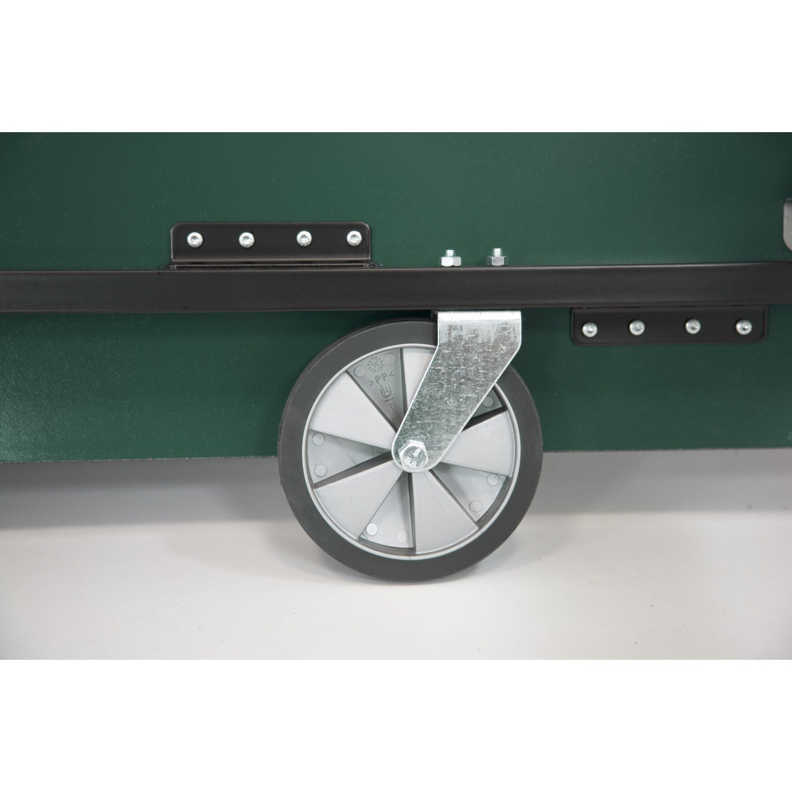 Die Sponeta S7-23 Tischtennisplatte gehört zu den Indoor-Tischtennisplatten der Sponeta Profiline. Der Sponeta Tischtennisplatte S7-23 besitzt an den Standfüßen keine Transportrollen. Bei dieser Tischtennisplatte sind an der Unterseite der einzelnen Platten Rollen befestigt mit denen die Plattenhälften bewegt werden können. Der große Vorteil daran ist, dass die Platte sehr platzsparend gelagert werden kann.