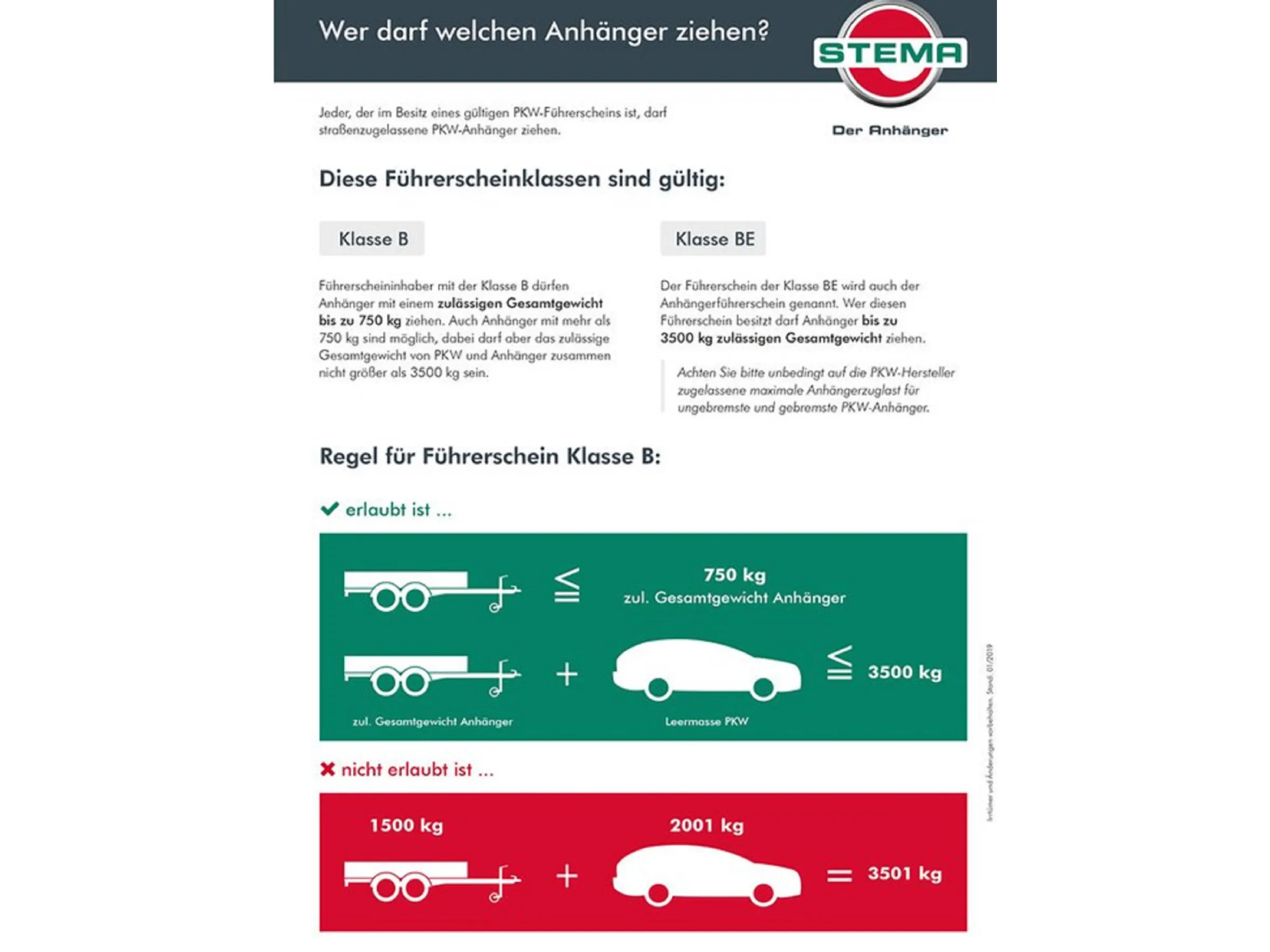 Der Stema Anhänger Basic 750 mit Bordwandaufsatz und Flachplane in der Farbe Lichtgrau ist ein ungebremster Kastenanhänger mit einer Nutzlast von 594 kg. Er ist das optimale Transportmittel für sämtliches Transportgut aus Haus, Hof, Hobby und Garten.