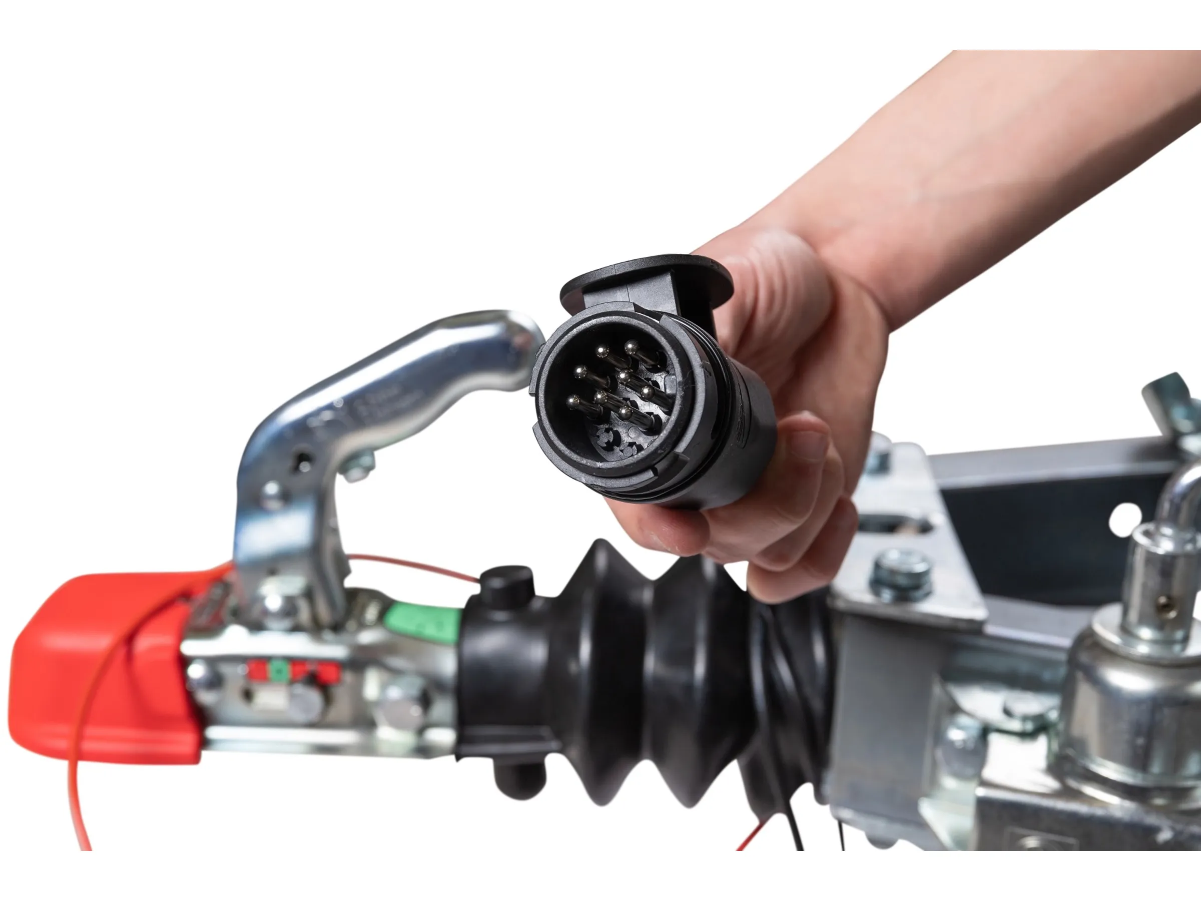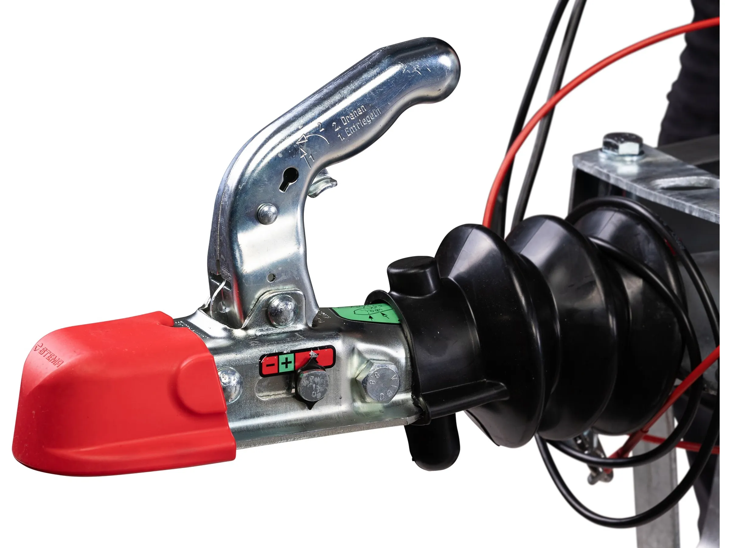 Durch die Auflaufbremse mit Rückfahrautomatik und die Stoßdämpfer an der hochwertigen KNOTT Gummifederachse kann dieser Anhänger auch für Geschwindigkeiten bis 100 km/h zugelassen werden.