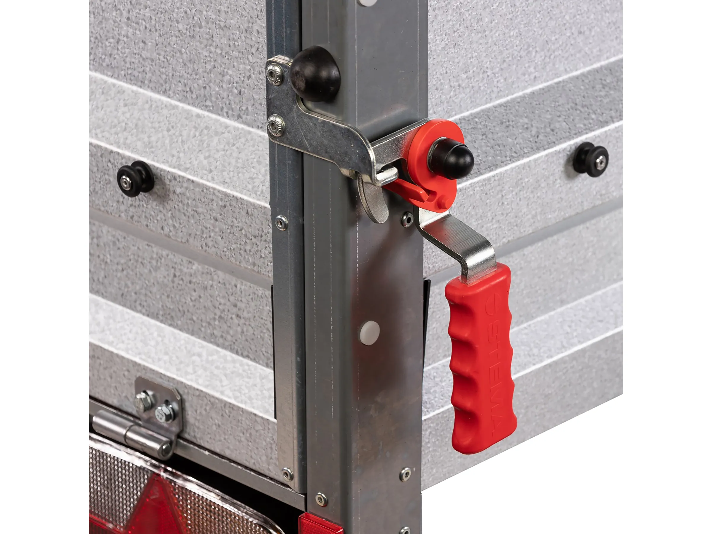 – 7-poliger Elektroanschluss – Stema-Sicherheitsverschlüsse an der Rückwand mit roten Soft-Griffen