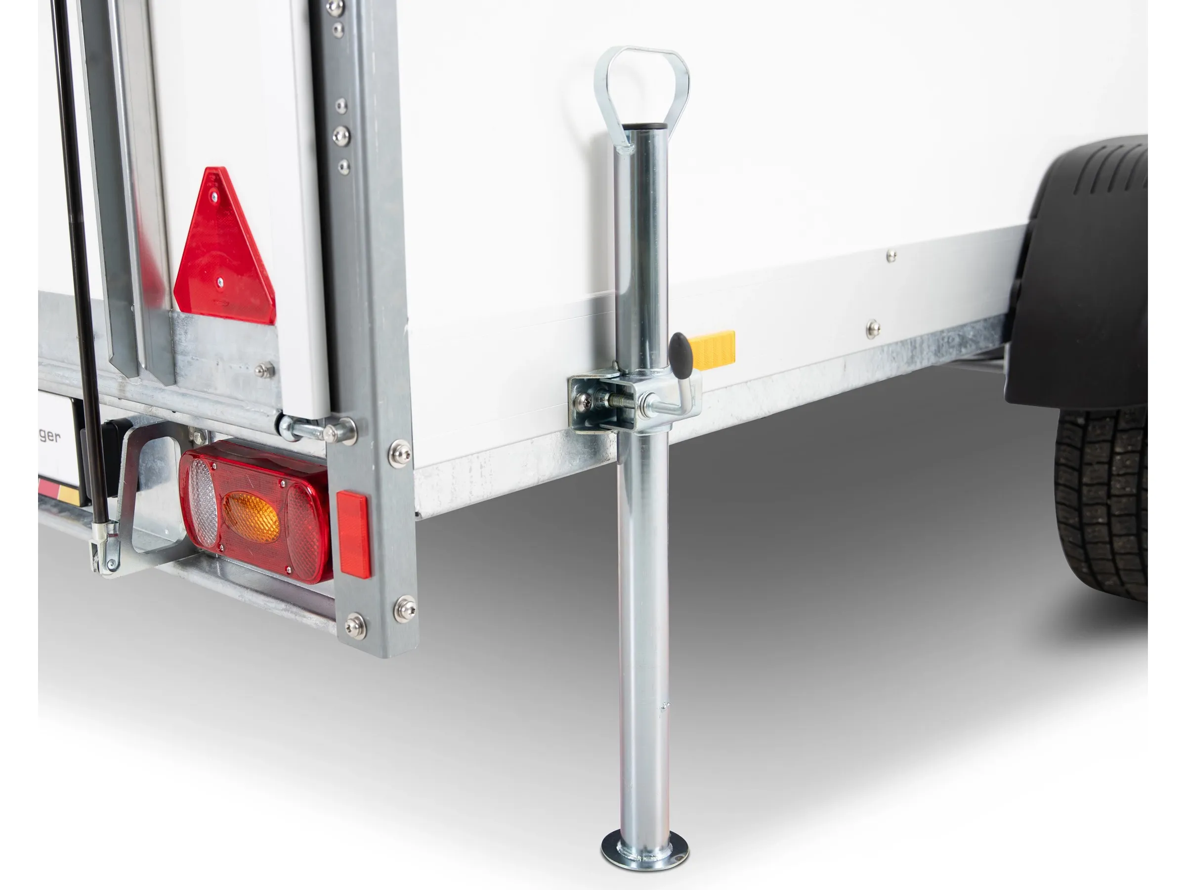 Der Stema Kofferanhänger P BOX mit einem zulässigen Gesamtgewicht von 1.300 kg bietet durch ein stabiles Fahrgestell mit Sicherheits-V-Deichsel, robuster Gummifederachse und wartungsfreien Kompaktradlagern eine optimale Straßenlage.