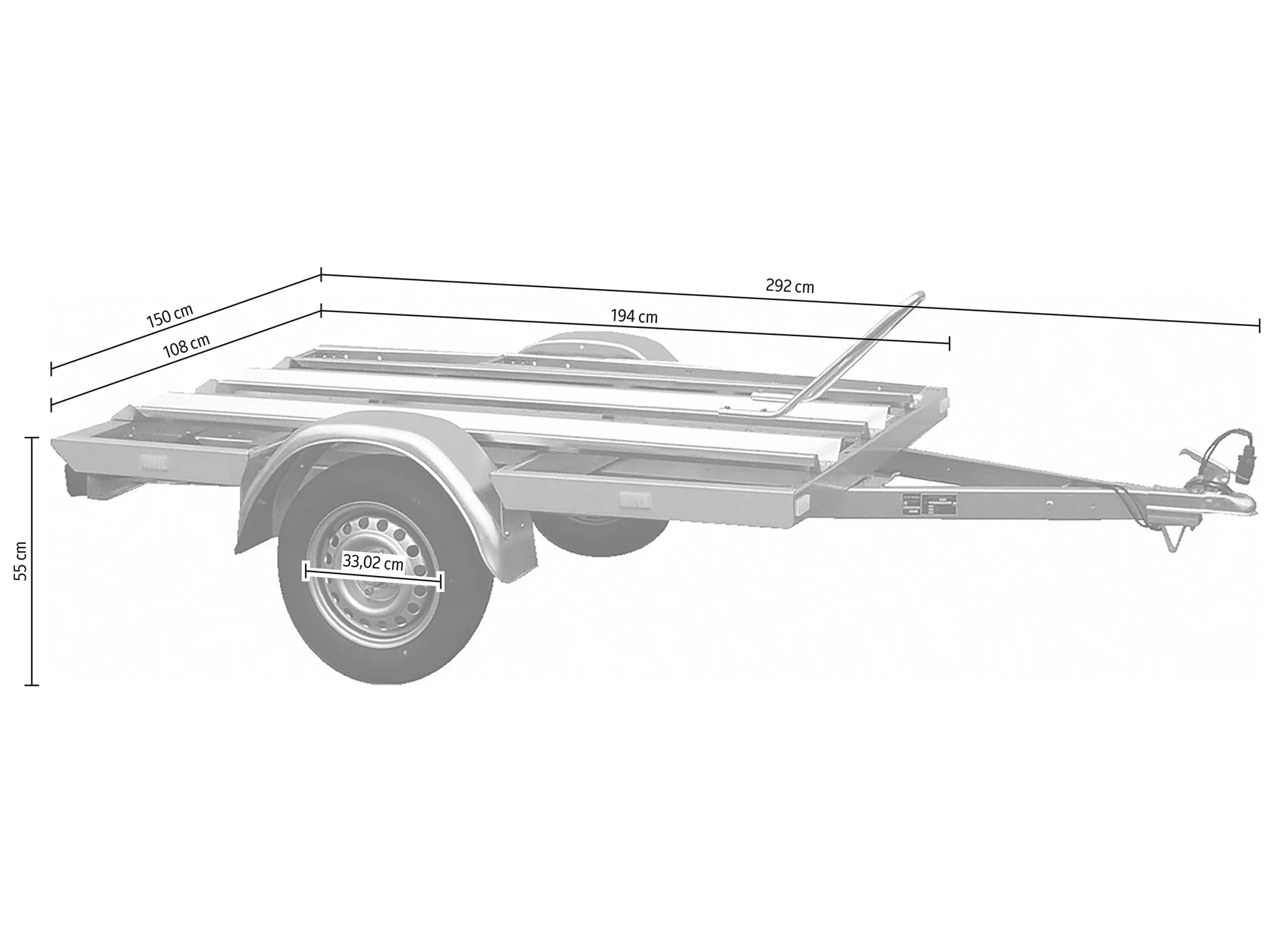Der Anhänger ist mit 7-poligem Elektroanschluss, Neureifen und nach EU-Richtlinien ausgestattet. Im Lieferumfang sind der Fahrzeugbrief, die EG-Übereinstimmungserklärung (CoC-Papier) und die Betriebsanleitung enthalten.