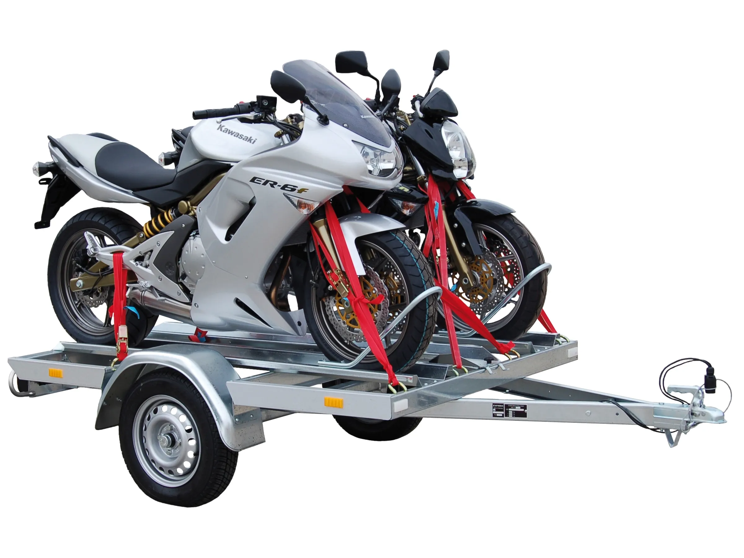 Den Anhänger zeichnen großdimensionierte Multifunktionsrückleuchten inklusive Nebelschlussleuchte und viele revisionsfreundliche Schraubverbindungen aus. Stabile Vorderradhaltebügel und viele Abspannpunkte sichern einen festen Stand der Motorräder.