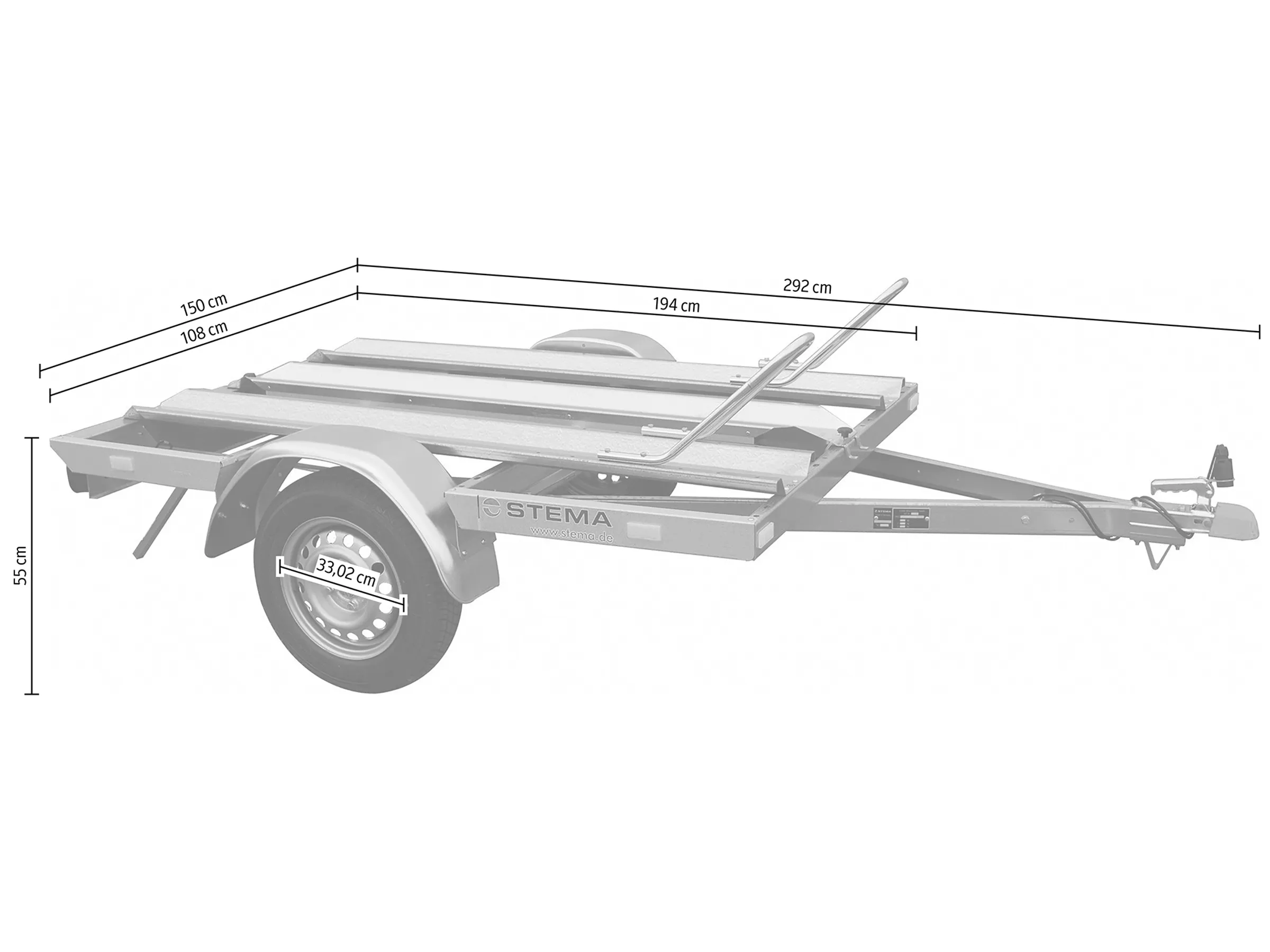 Die Besonderheit des Stema Motorbike Trailer MT750 BS2 ist die niedrige Ladehöhe von nur ca. 55 cm, die ein kraftschonendes Beladen ermöglicht.