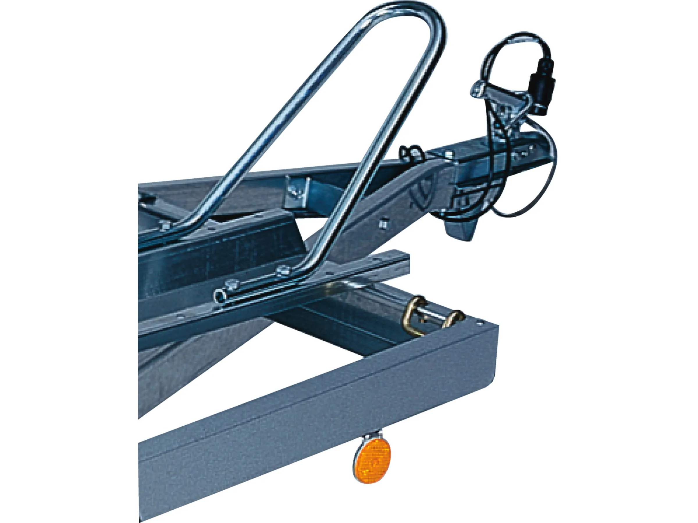 Der Anhänger ist mit einem Stützrad, 13-poligem Elektroanschluss, Neureifen und nach EU-Richtlinien ausgestattet. Ein zusätzlicher, aus elastischem Kunststoff bestehender Schutz auf der Kupplung (Red Nose) sichert das Zugfahrzeug vor Beschädigungen.