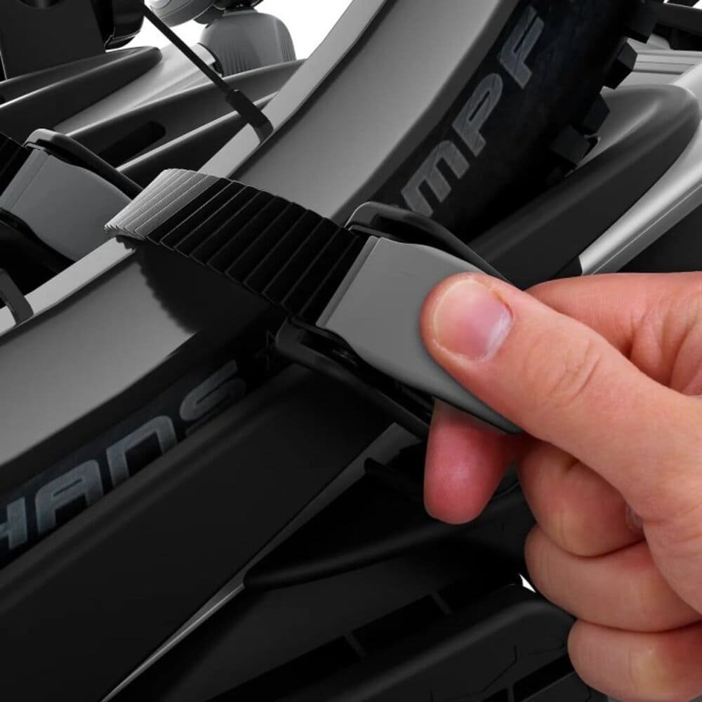 • Einfaches Befestigen der Räder durch lange Felgenhaltebänder mit Ratschenfunktion
