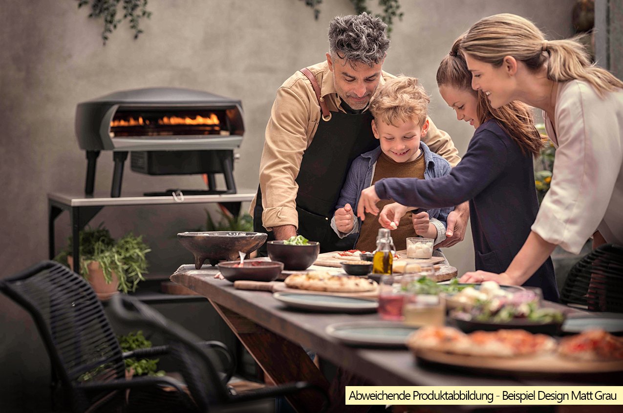 - Zusätzlicher Booster-Brenner (0,7 kW) unter dem Pizzastein für perfekte Steintemperatur auch bei langen Pizzapartys