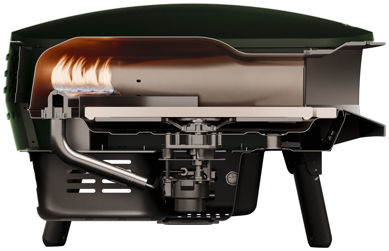 - kompakter Gas Pizzaofen – in einem edlen Design mit mattgrüner Pulverbeschichtung