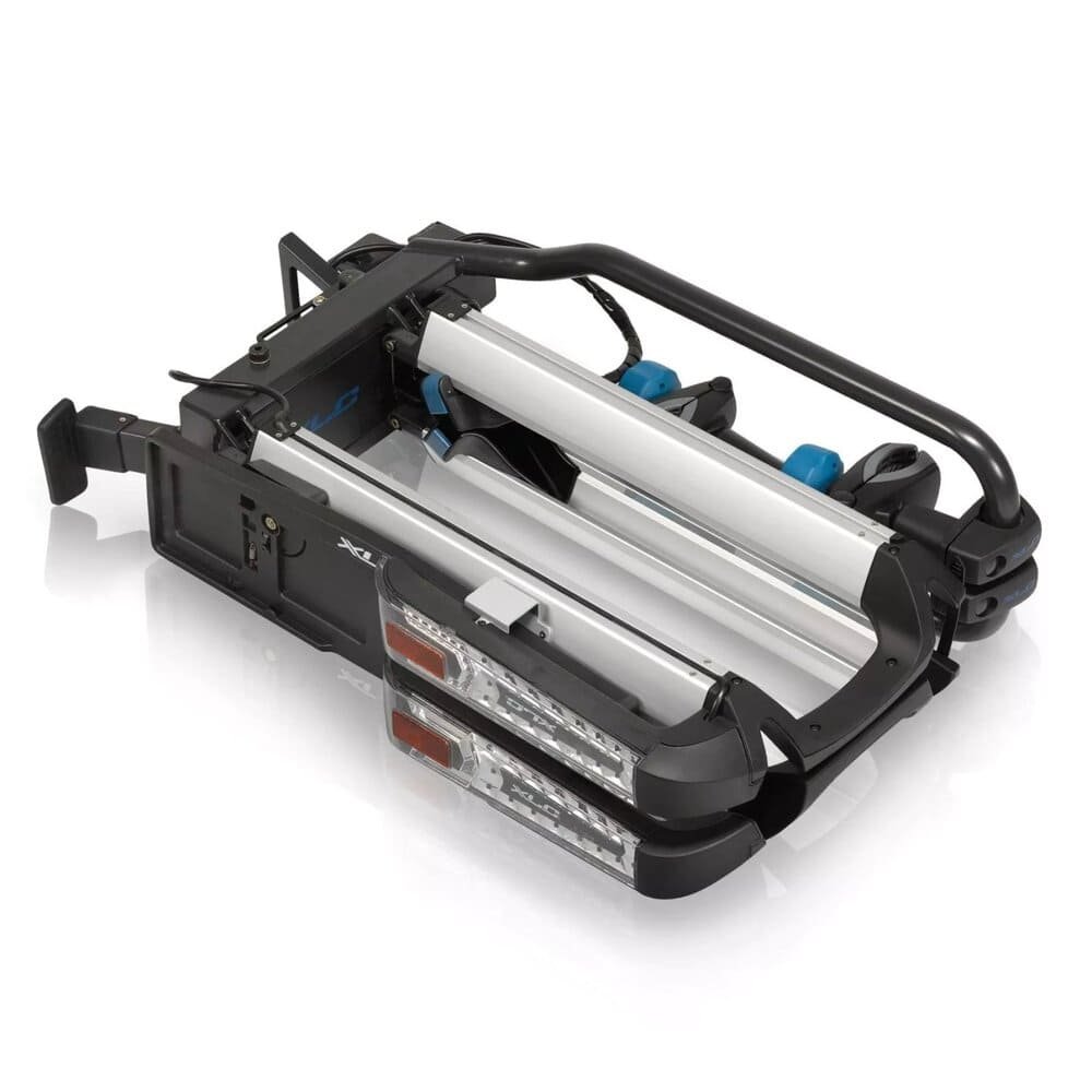 Der XLC Heckträger Azura Xtra WT VC-C10 ist der ideale Begleiter für Radausflüge. Er lässt sich im Handumdrehen auf der Anhängerkupplung befestigen und sowohl der Träger, als auch die montierten Räder sind abschließbar und somit gegen Diebstahl gesichert. Um einen leichten Zugang zum Kofferraum zu ermöglichen, ist der Azura Xtra WT auch mit montierten Fahrrädern abklappbar. Er ist auch für schwerere E-Bikes geeignet und kann bis zu 60 kg Gewicht tragen. Dank der breiten Reifenhalter und der langen Radschienen können Fahrräder mit einer Reifenbreite bis zu 68 mm und einem Radstand von bis zu 130 cm transportiert werden, wie zum Beispiel E-SUV oder große E-Mountainbikes. Er ist für 2 Fahrräder ausgelegt, kann aber mit einem Adapter für ein 3. Fahrrad erweitert werden (XLC Erweiterungsset 3. Rad VC-X26). Zum Verstauen lässt sich der Heckträger auf eine Größe von 245 x 780 x 500 mm zusammenklappen.